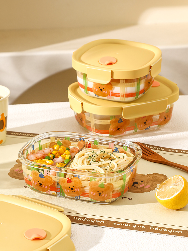 高ホウケイ酸ガラス使用 急冷・急加熱でも割れにくく、-20℃〜120℃の瞬間温度差に対応。 仕切り付きデザイン 仕切りなし・2分割・3分割タイプをご用意。味移りを防ぎ、栄養バランスも自由に調整可能。 四面ロック+シリコンパッキン内蔵 強力ロックでしっかり密閉。漏れにくく鮮度をキープ。 豊富な形状・サイズ展開 キッチンのさまざまな用途に対応。 冷蔵・電子レンジ対応 -20℃〜400℃対応で耐熱・耐冷性に優れています。 ※フタをしたまま加熱しないでください。