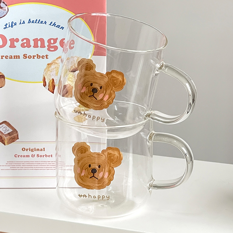 高ホウケイ酸ガラスで耐熱・耐冷 厚手ハンドルで持ちやすい 食品接触可能な高温転写加工