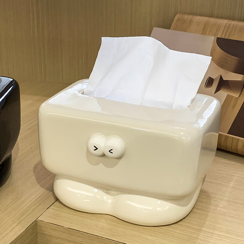 色釉仕上げで安心設計。 広口設計でティッシュが取り出しやすく、丈夫で色あせしにくい仕様。 クリーム系カラーでやわらかく温かい空間を演出。