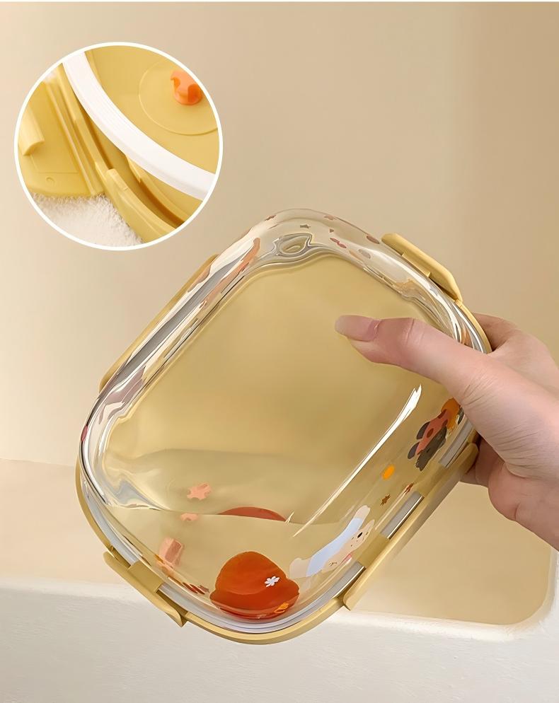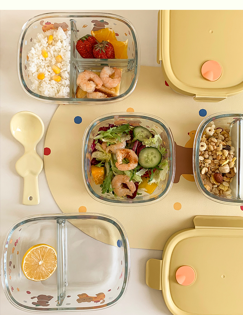 高ホウケイ酸ガラス使用。-20℃〜120℃の急激な温度差にも耐え、割れにくい安心設計。 四面ロック+シリコンパッキンでしっかり密封。強力バックルで液漏れ防止。 コンパクトで持ち運びやすく、ランチボックスとしても活躍。 仕切り付き(仕切りなし/2分割/3分割)で味移りを防ぎ、栄養バランスも自由自在。 冷蔵・電子レンジ対応(耐熱-20℃〜400℃)。便利で安心。