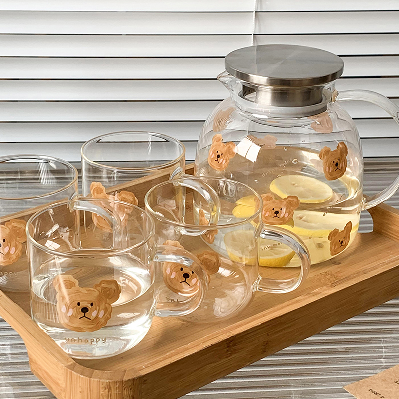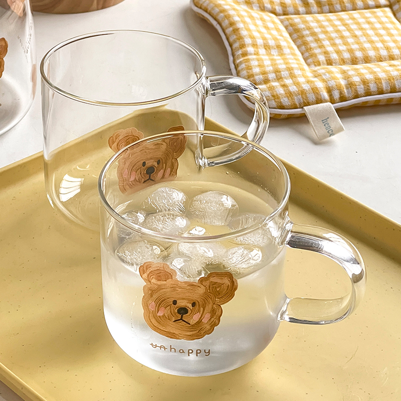 高ホウケイ酸ガラスで耐熱・耐冷 厚手ハンドルで持ちやすい 食品接触可能な高温転写加工