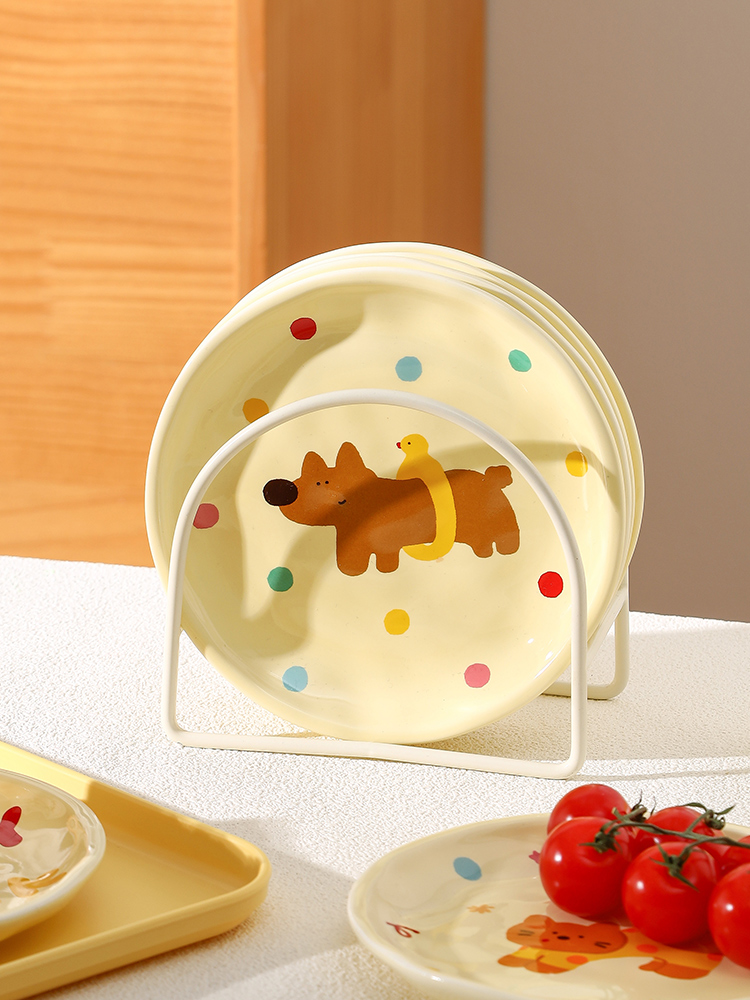 一人一皿でテーブルをすっきり整頓。食べ残しの置き場所にも便利。 高温転写加工で安全に使用可能。 専用アイアンスタンド付きで省スペース収納。 電子レンジ・食洗機・オーブン対応。