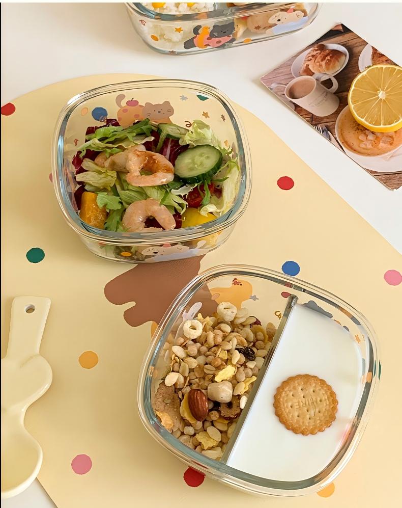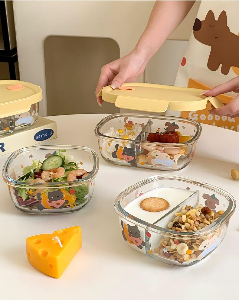 高ホウケイ酸ガラス使用。-20℃〜120℃の急激な温度差にも耐え、割れにくい安心設計。 四面ロック+シリコンパッキンでしっかり密封。強力バックルで液漏れ防止。 コンパクトで持ち運びやすく、ランチボックスとしても活躍。 仕切り付き(仕切りなし/2分割/3分割)で味移りを防ぎ、栄養バランスも自由自在。 冷蔵・電子レンジ対応(耐熱-20℃〜400℃)。便利で安心。